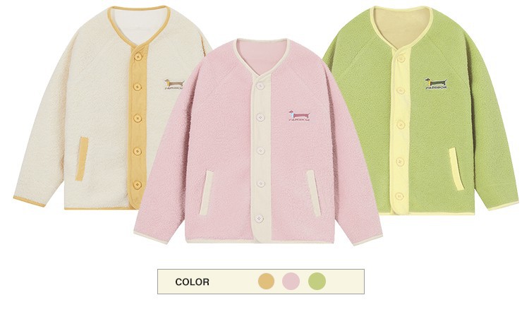 国潮牌情侣秋冬撞色门襟无领颗粒绒抓绒开衫外套男女款